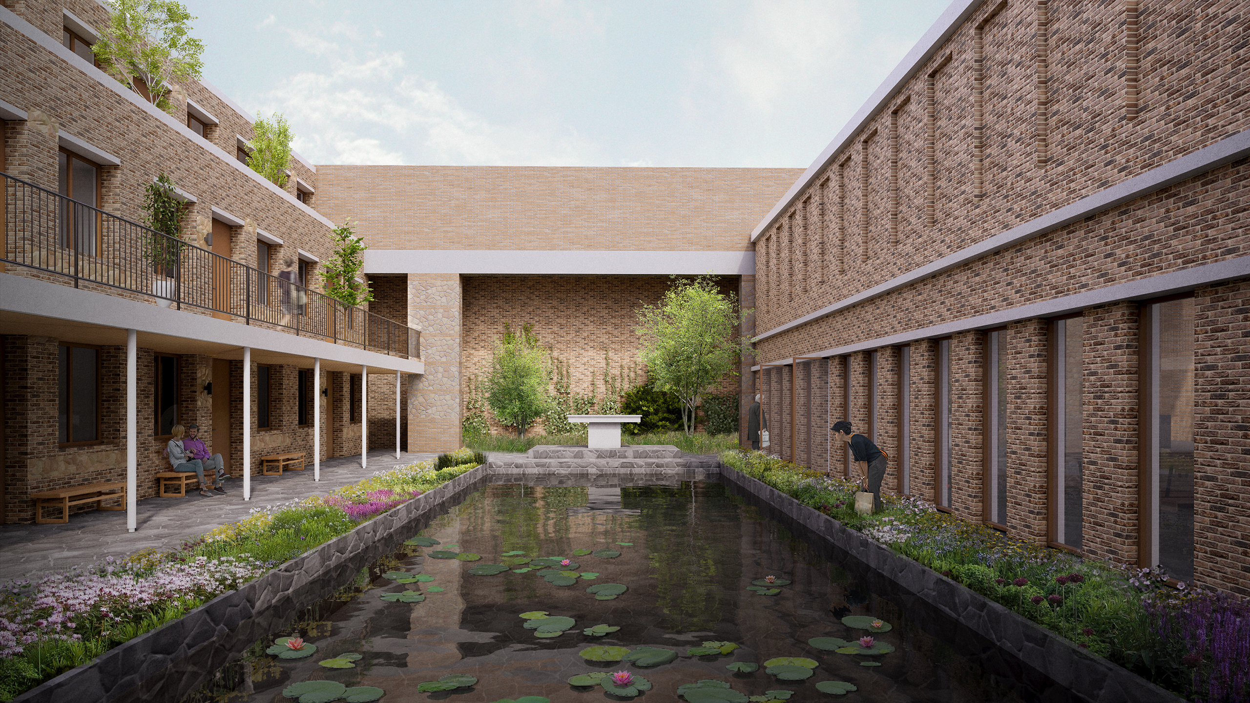De nieuwe architectuur is geïnspireerd op de Bossche School en elementen van het bestaande kerkgebouw (zoals de ronde, juist dunne stalen kolommen) en voegt zich daarmee als vanzelfsprekend tussen de oude kerkgevels. Materialen van het bestaande gebouw zoals Noorse flagstone, Belgisch breuksteen en Sambahout van de plafonds worden hergebruikt in de nieuwe bouwdelen. Het sobere, strak gevelritme en de ranke kolommen geven de binnenhoven een sereen karakter. Deze gezamenlijke binnentuinen bieden kansen voor interactie tussen de toekomstige bewoners.
